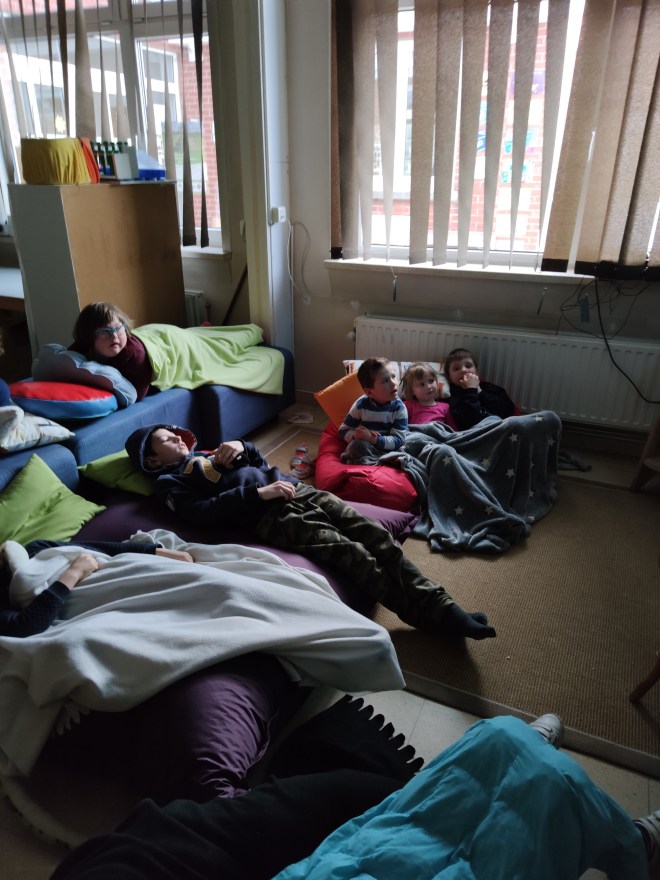 We aten lekkere croque monsieurs, we bekeken een film van Casper en Emma en speelden buiten.